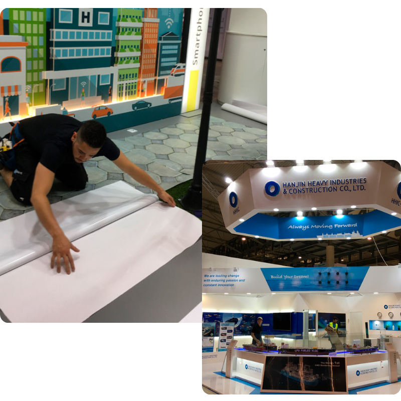 Equipo propio y red en 9 ciudades. Montaje seguro, fuera de horario si lo necesitas, con cierre fotográfico de calidad.